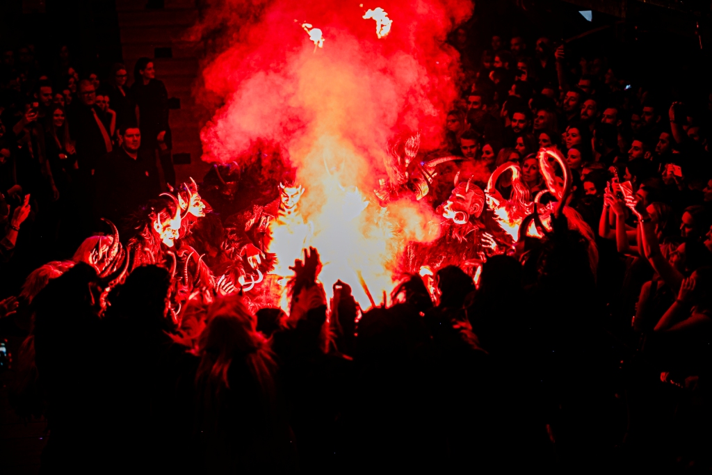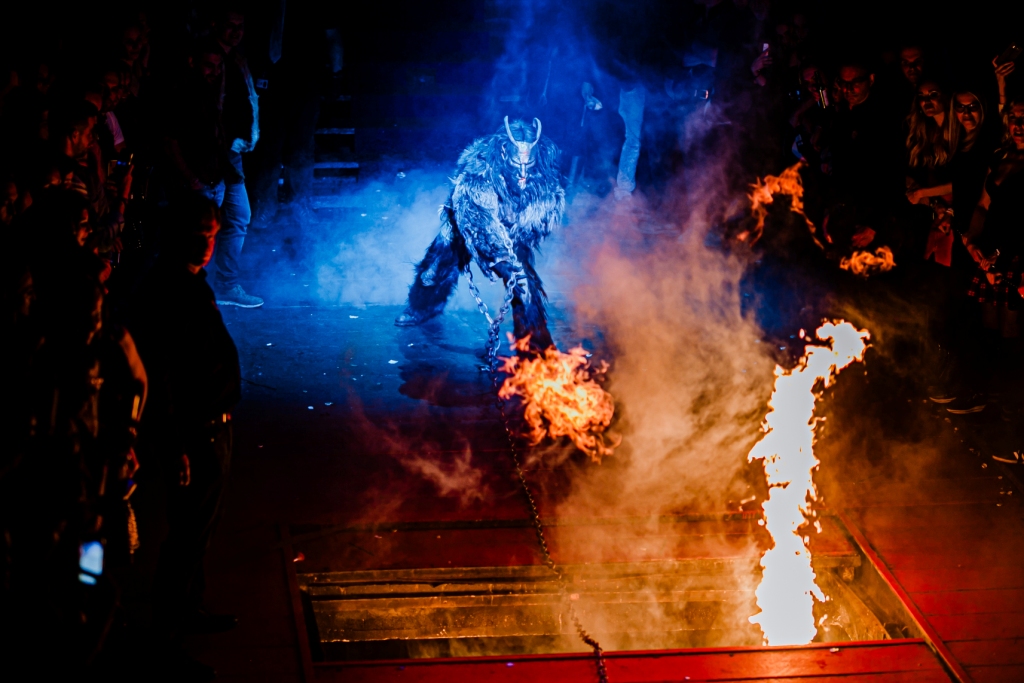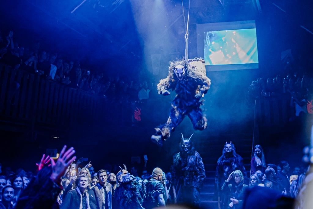 Gegen Mitternacht ist es dann soweit. Es erfolgt der choreographisch inszenierte und bis ins Detail mehrfach geprobte Auftritt der Anifer Krampusse. Hierbei werden die Zuschauer mit beeindruckenden Showeinlagen und waaghalsigen Stunts, unterstützt von einer gewaltigen Musik- und Tonanlage, überrascht.