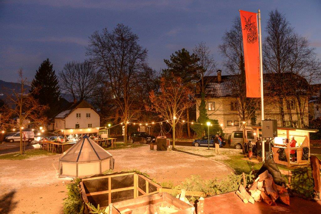 Der Lauf der Anifer Krampusse am Gemeindeplatz Anif